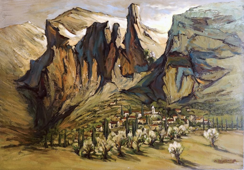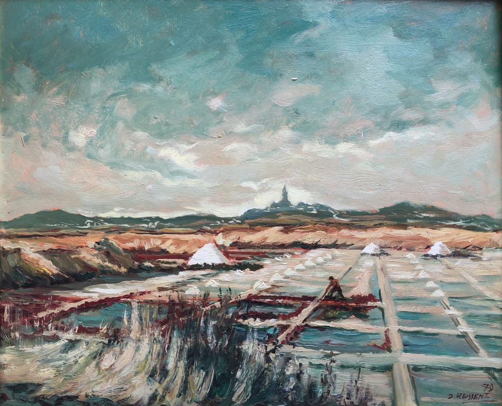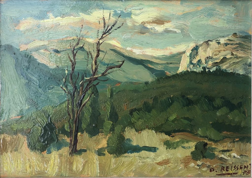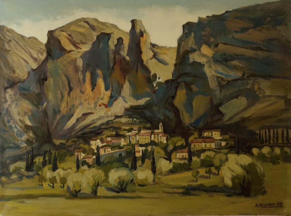 Denis Reissent在1953年、1979年和1980年分别创作了三幅描绘Le Moustiers-Sainte-Marie风景的画作,这些作品展示了在不同年代下的风貌,体现了Reissent对自然景观和光线变化的深刻观察与艺术表达。