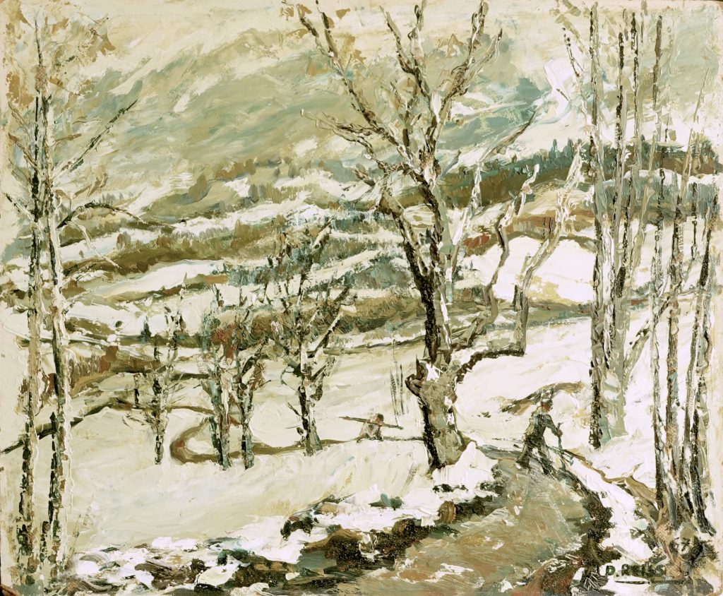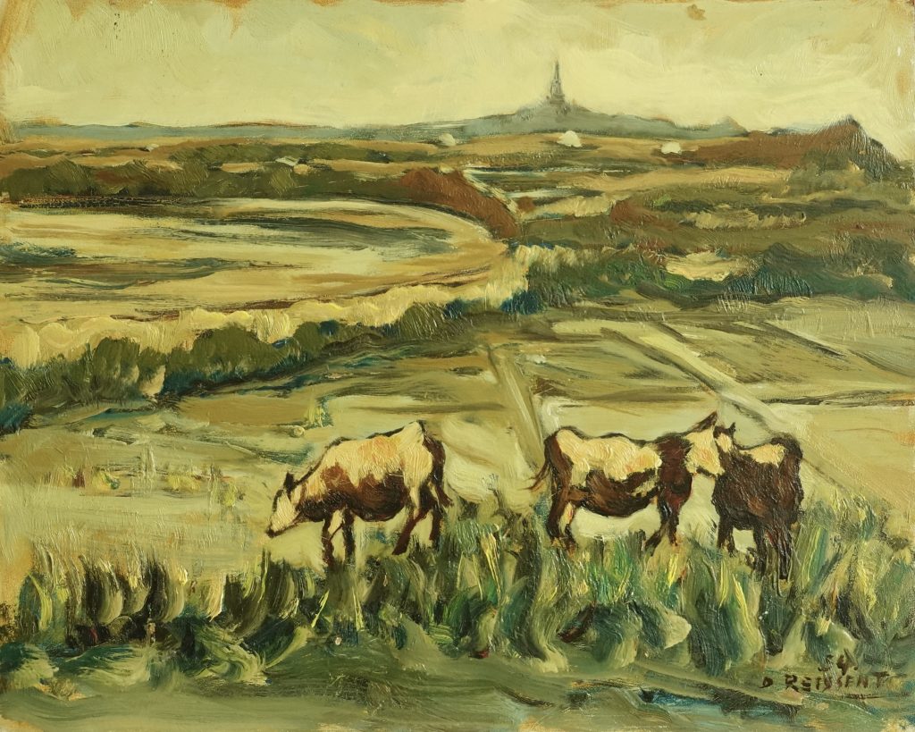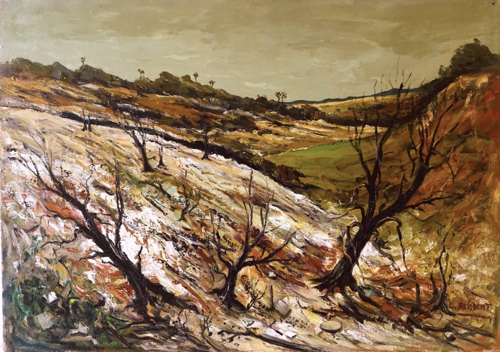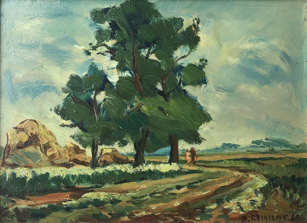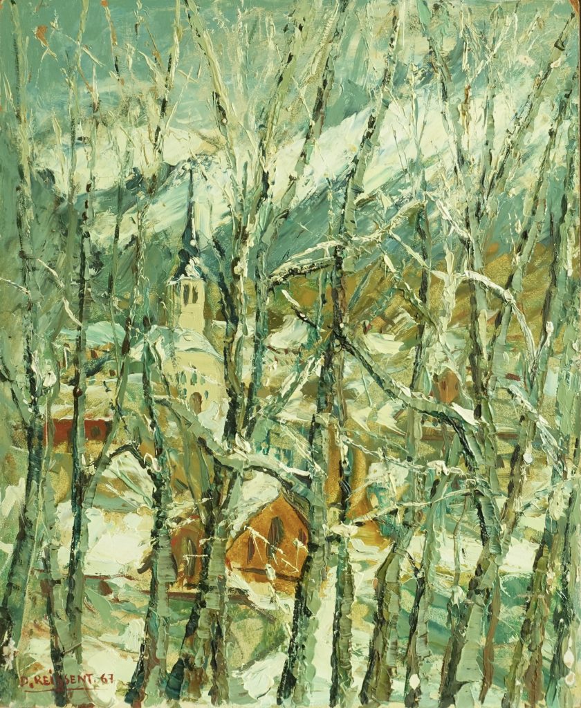 1950年代,法国正经历从战后重建到经济繁荣的过渡时期。这个时期,法国社会经历了显著的变革,包括城市化进程的加快和社会结构的变化。战后的法国面临着重建与恢复经济的挑战,同时国家在文化和艺术方面也逐渐复兴。许多艺术家,包括Reissent,开始关注自然和传统风景的美学,以此作为对现代社会压力的反思和逃避。这个时期的风景画常常带有对自然的怀旧和对平静生活的向往。
