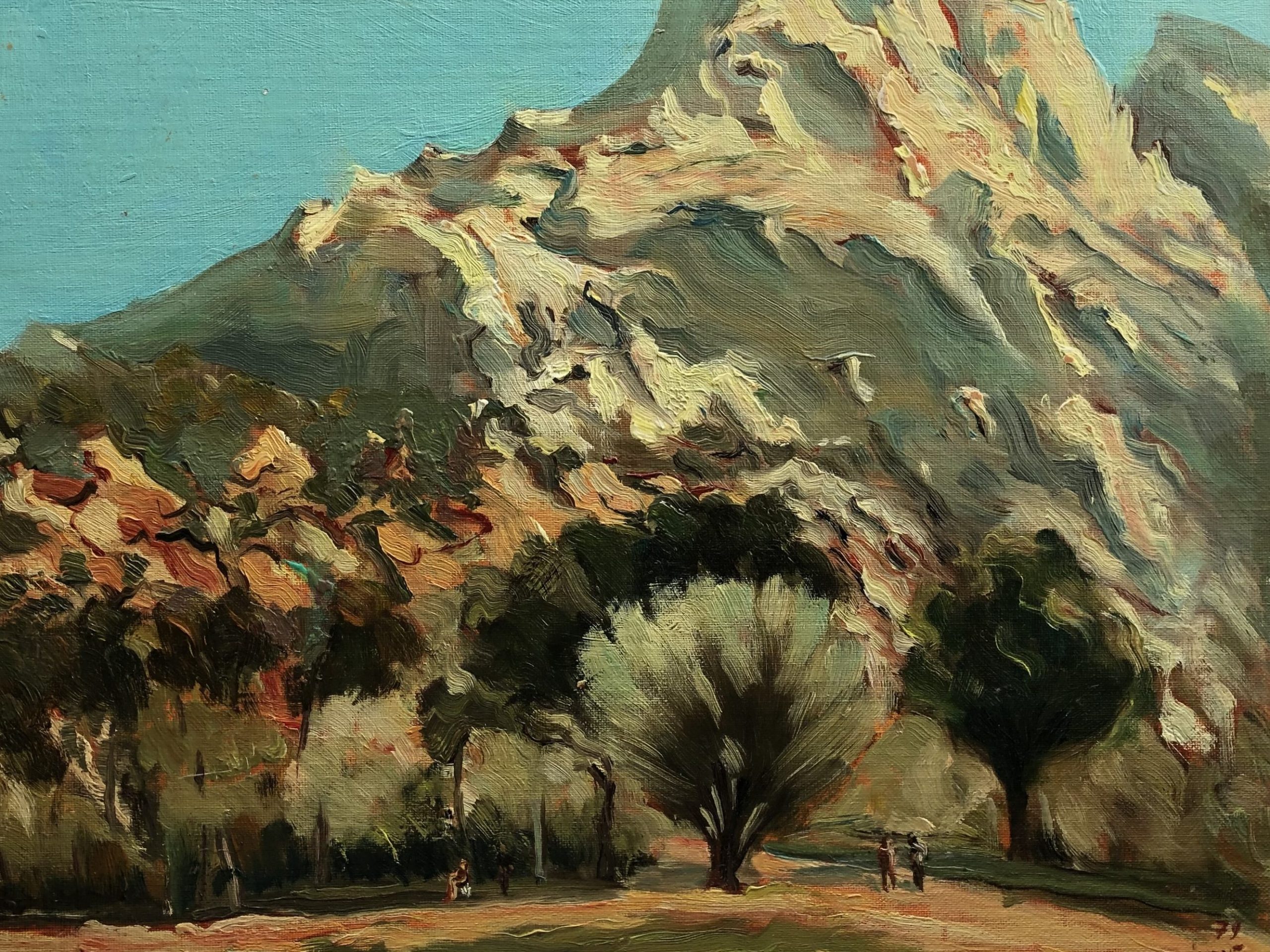 这幅画捕捉了初夏季节的生机与活力,画面中的色彩鲜艳,绿色植被繁茂,山和村庄相辅相成,反映了自然界在这一时期的蓬勃生机。此时的画作受到了初夏季节的明亮光线和自然色彩的影响,展现了Le Moustiers-Sainte-Marie在温暖季节中的迷人风景。Reissent描绘了一个充满生机的自然景观,反映了战后法国人对恢复和重建的希望。这幅画可能代表了对新的开始和繁荣的期待,同时也是对战后社会恢复的一种艺术回应。